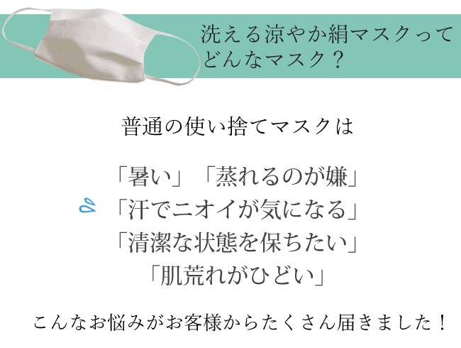 (2) 天然素材の絹なので、肌に優しい (3) 絹なのにご自宅で洗えるので何度も繰り返し使える (4) 不織布フィルター入りでしっかりガード ※最初は形崩れしないように生地がかたく感じますが、 洗うと柔らかくなります。